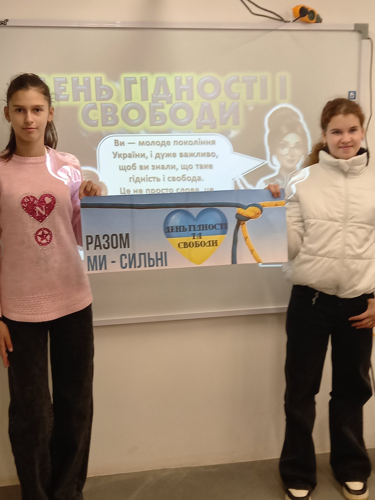 Сьогодні, 21 листопада, наша шкільна родина вшанувала День Гідності та Свободи – свято, що символізує незламний дух українського народу та його прагнення до свободи й демократії. Ми провели низку заходів, щоб учні глибше усвідомили уроки історії та значення Революції Гідності й Помаранчевої революції для сучасної України. Гідність та Свобода – це не просто слова. Це наша відповідальність перед минулими та майбутніми поколіннями. Дякуємо педагогам за організацію та учням за активну участь. Пам'ятаймо подвиг наших Героїв!